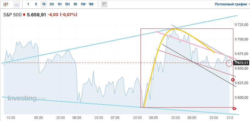 Прогноз негативный. (выход из коридора ап-тренда)