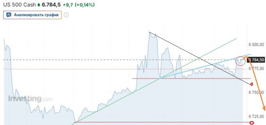 Прогноз негативный. Вплоть до выхода вниз из коридора ап-тренда.